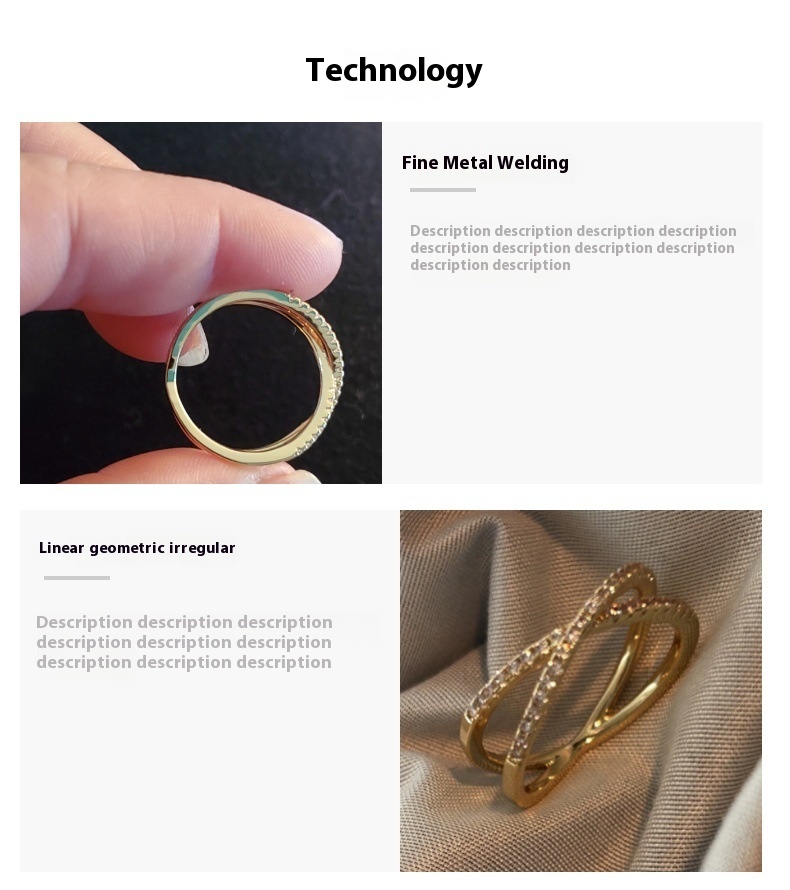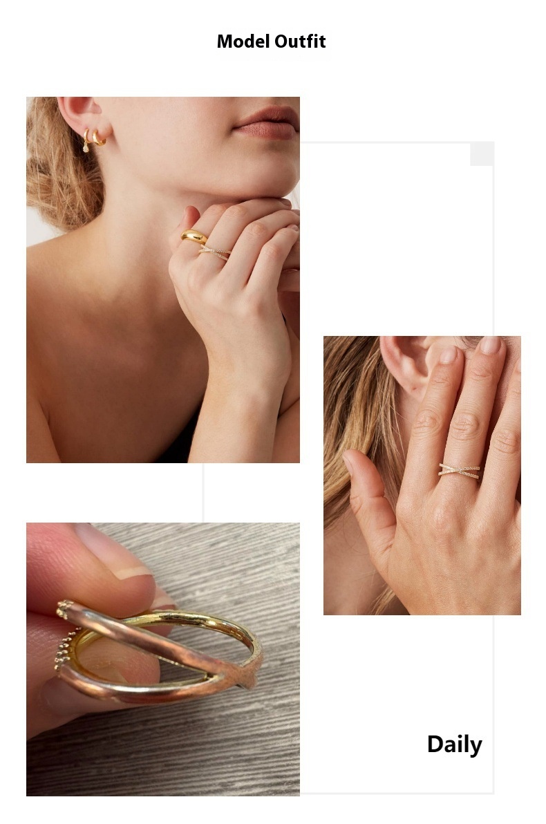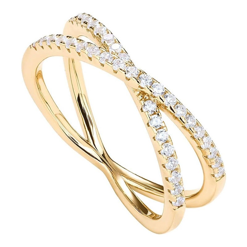 14K Gold Plated Women's X Ring Simulated Diamond CZ Criss Cross Ring